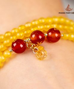 Vòng tay đá mã não vàng tam hợp cuộn 3 Tỵ-Dậu-Sửu ...